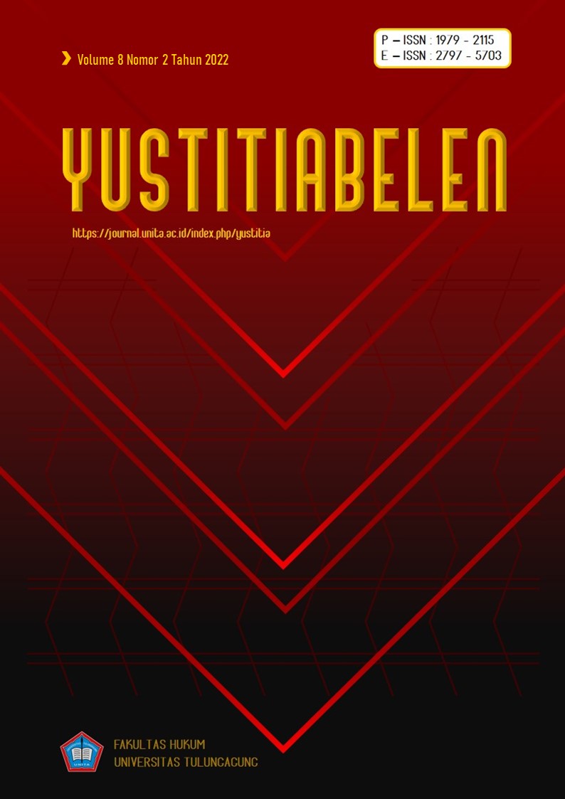 DOI: https://doi.org/10.36563/yustitiabelen.v8i2.530